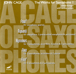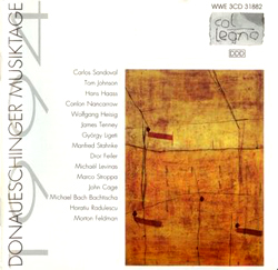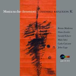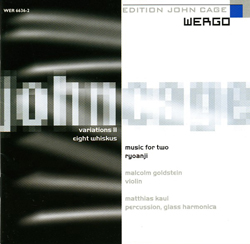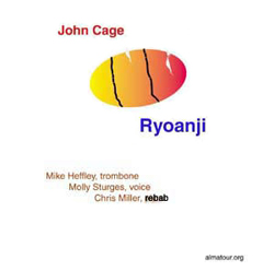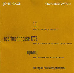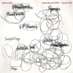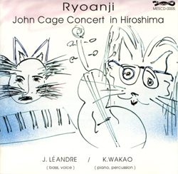Comments Scores available for oboe (EP 66986b), voice (EP 66986c), flute (EP 66986d), double bass (EP 66986e), and trombone (EP 66986g), each with percussion obbligato. Also for orchestra (EP 66986f). In 1983, Cage began a composition-in-progress called Ryoanji, named after the rock garden in Kyoto, Japan. This garden is a collection of 15 rocks, placed in a landscape of raked, white sand. In the summer of 1983, Cage started a series of drawings entitled Where R=Ryoanji, using (by drawing around) 15 different stones. Around the same time, the oboist James Ostryniec asked Cage to write a piece for him, which resulted in the first part in a series of pieces entitled Ryoanji. Between 1983 and 1985, Cage added 4 more: for voice, flute, double bass, and trombone. In July of 1992, during an interview with Joan Retallack (with cellist Michael Bach present), Cage made sketches for a cello part he never completed. (See description in Retallack and Cage, Musicage – Cage Muses on Words, Art, Music.) These solos (in any combination or as solos) are always accompanied by a percussion part or a similar 20 member orchestral part. Each is a series of 8 songs, with the exception of the part for voice, which has 9. A song is created on 2 pages, each of which contains 2 rectangular systems. In each rectangle, Cage traced parts of the perimeters of the given stones. These curves are to be played as glissandi within the given pitch ranges. In some places, contours overlap, thus making materials impossible to play. In these cases, one or more tape recordings are used, with which the soloist plays a duet or trio. The percussion part is a single complex of 2 unspecified sounds, played in unison, wood and metal. The metres for these materials are twelve, thirteen, fourteen, or fifteen. The twenty musicians of the orchestra independently choose a single sound, which they then use for the entire performance. They should play in "Korean unison", their attacks being close, but not exactly together. These parts are a series of quarter notes (as in the percussion part), which (different for each instrument) are to be played slightly before, slightly after, or more or less on the beat. The soloists represent the stones of the garden, the accompaniment the raked sand. |